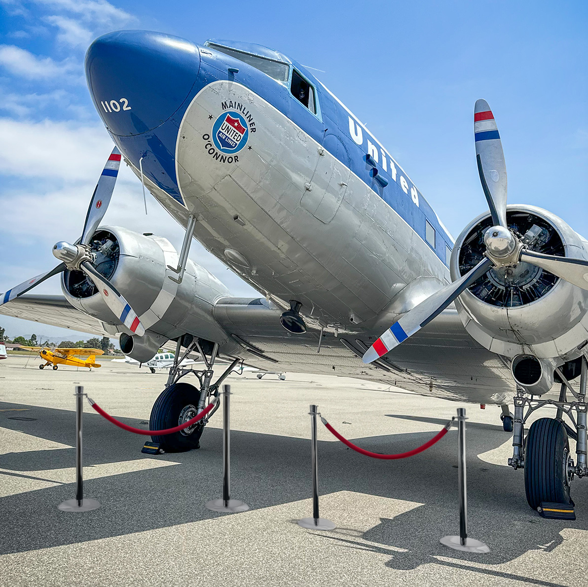 In 2000, Clay fully restored this aircraft and christened her Mainliner O’Connor, honoring United Airlines founder William Patterson’s executive DC-3.